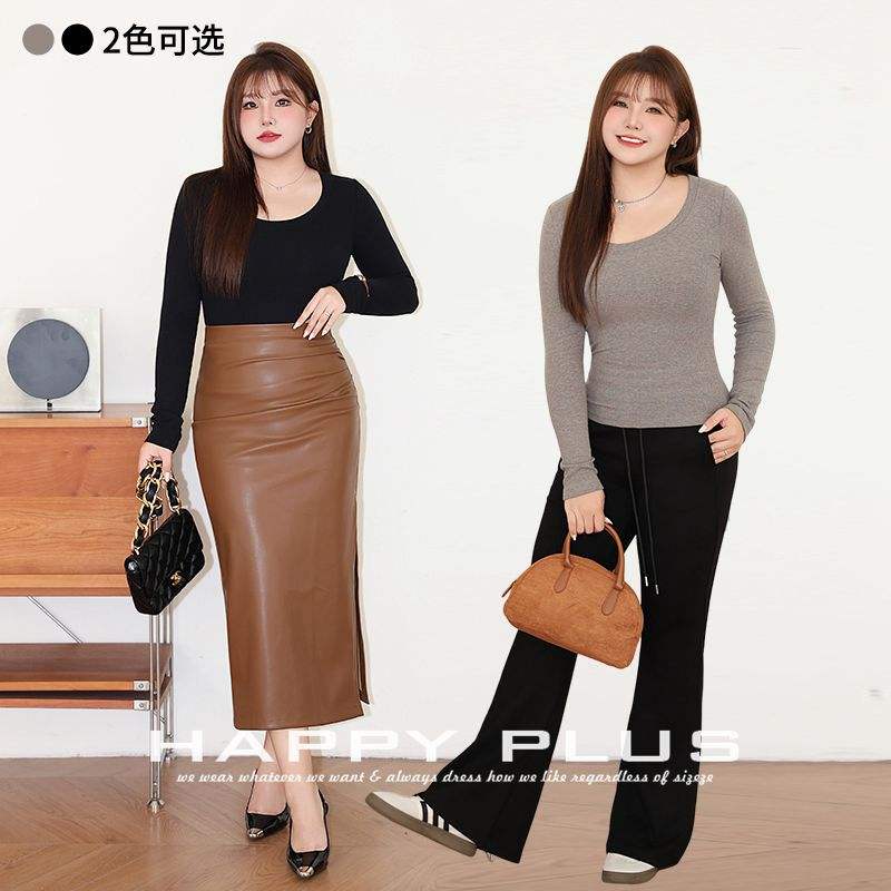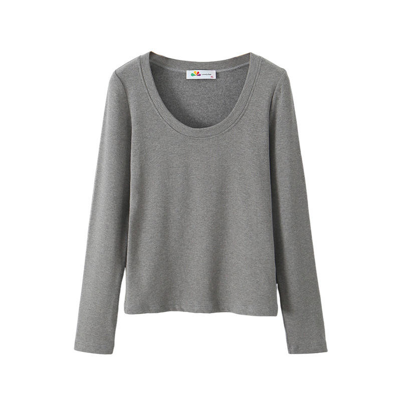 เสื้อผู้หญิงรันฉีสีเทา คอกลม แขนยาว สีพื้น เสื้อชั้นในทรงเข้ารูป สวมใส่สบาย รุ่น N9082