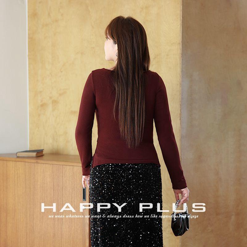 เสื้อถักแขนยาวผู้หญิงรันฉี ทรงเอซิมเมตริก สีพื้น คอวี กระชับเอว สไตล์เรโทร สีแดงคลาสสิก สีดำ ไซส์พลัส