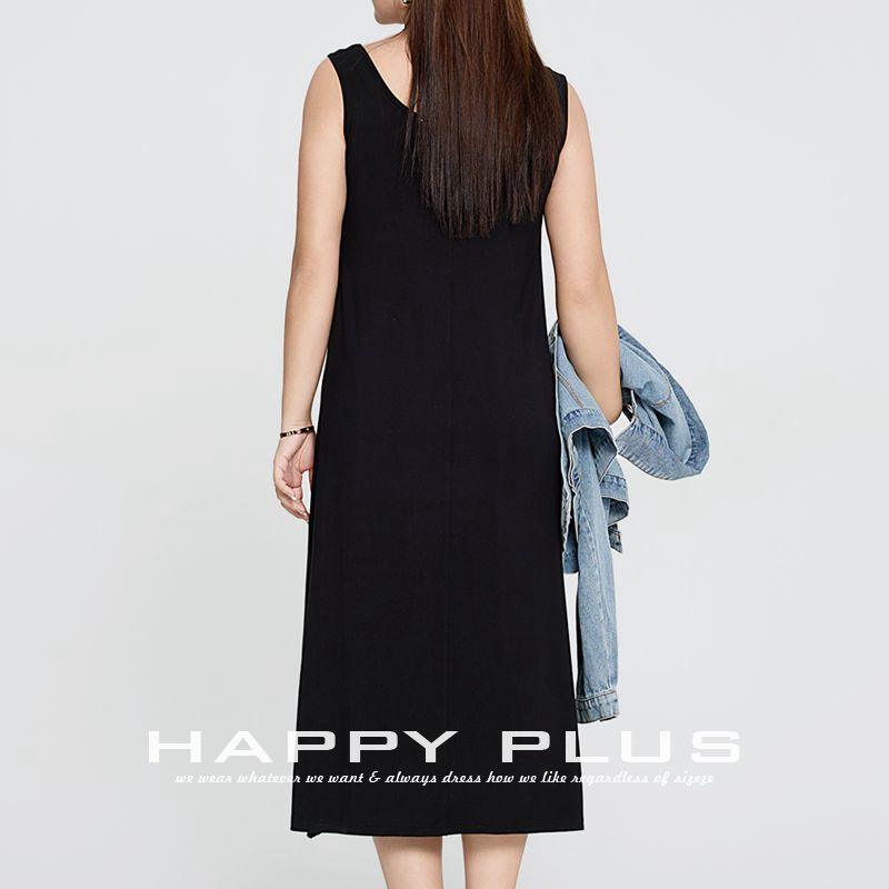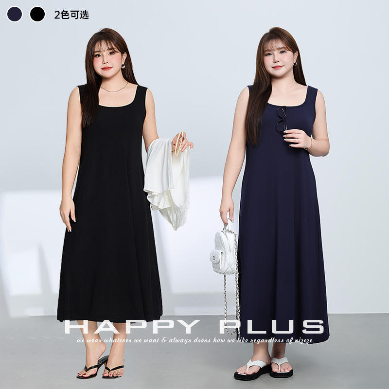 เดรสยาวทรงเอไลน์แขนกุดสำหรับผู้หญิง รุ่น Runqi สีดำ ไซส์พลัส ความยาวคลุมเท้า ดีไซน์เรียบง่าย สีพื้น คอวี
