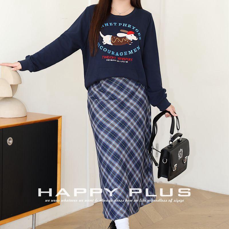 เสื้อสเวตเชิ้ตคอกลมสีน้ำเงินกรมท่าสำหรับผู้หญิงของรันฉี พร้อมลายปักรูปสุนัข ไซส์พลัส เสื้อถักลำลอง