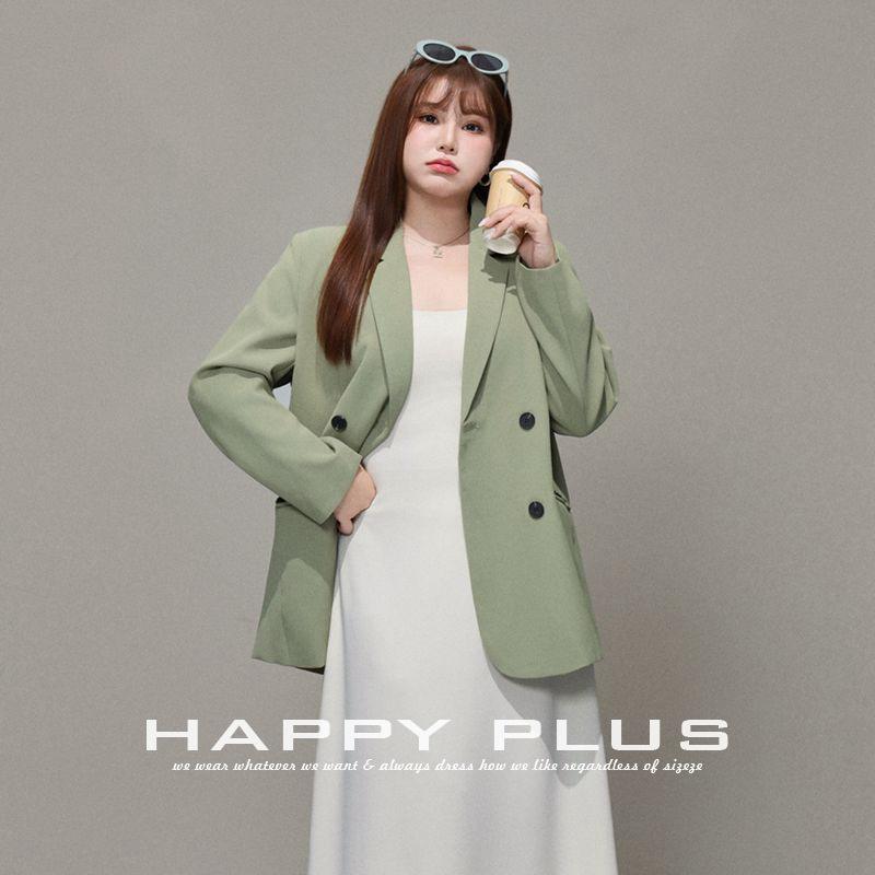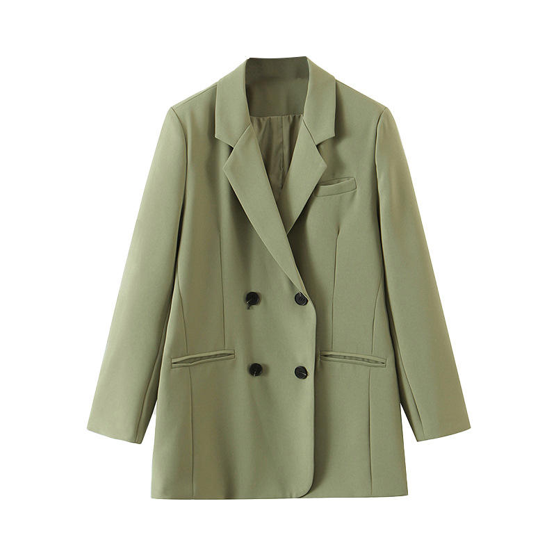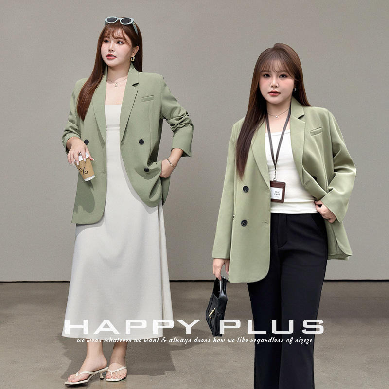 เสื้อเบลเซอร์ผู้หญิงไซส์ใหญ่ รุ่น Runqi สีเขียวฟอเรสต์ ผ้าทวิล ปกคอปกแบบเว้า ทรงลำลอง สีพื้น รุ่น N8235