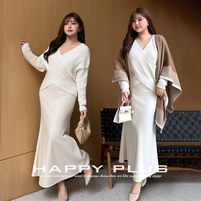 เดรสไหมพรมคอวีไขว้สำหรับผู้หญิง รุ่น Runqi เอวธรรมชาติ ความหนาปานกลาง ระบายอากาศได้ดี สไตล์พันรอบตัว ให้ลุคหรูหรา