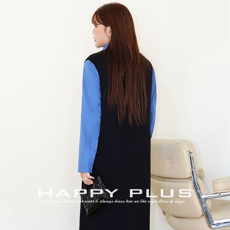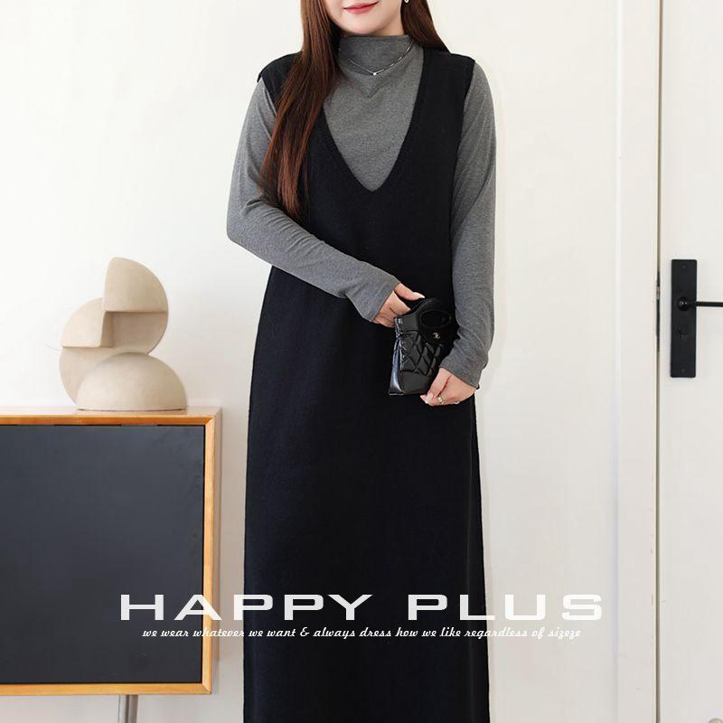 รันฉีชุดเดรสเสื้อกั๊กถักทรงหลวมคอวีสำหรับผู้หญิงสีทึบชุดเดรสเสื้อสเวตเตอร์ขนาดพลัส N9015 สีเทาเข้ม