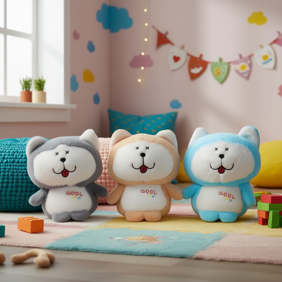 ตุ๊กตาหมาฮัสกี้ Ruobing ขนาด 11 ซม.-30 ซม. ผ้ากำมะหยี่นุ่มพิเศษ ไส้ใยฝ้าย PP ปักโลโก้ สำหรับเด็ก ของขวัญวันเกิด