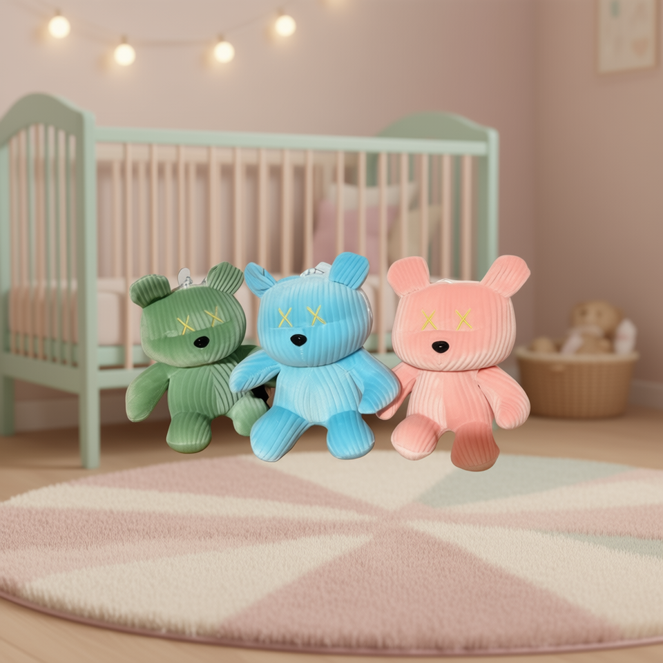 ตุ๊กตาหมีรูปทรงน่ารัก ผลิตจากวัสดุเวลบัว บรรจุใยฝ้าย PP เหมาะสำหรับเด็กอายุ 0-24 เดือน ใช้ได้ทั้งเด็กชายและเด็กหญิง ตุ๊กตาสัตว์นุ่มนิ่ม