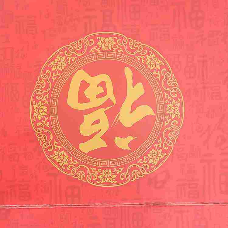 ถุงของขวัญสีแดงหรูหรา ประดับลวดลายดอกไม้ประณีต พร้อมตัวอักษรจีนแบบดั้งเดิมว่าเป็น “ฟู่” สำหรับเทศกาลตรุษจีน