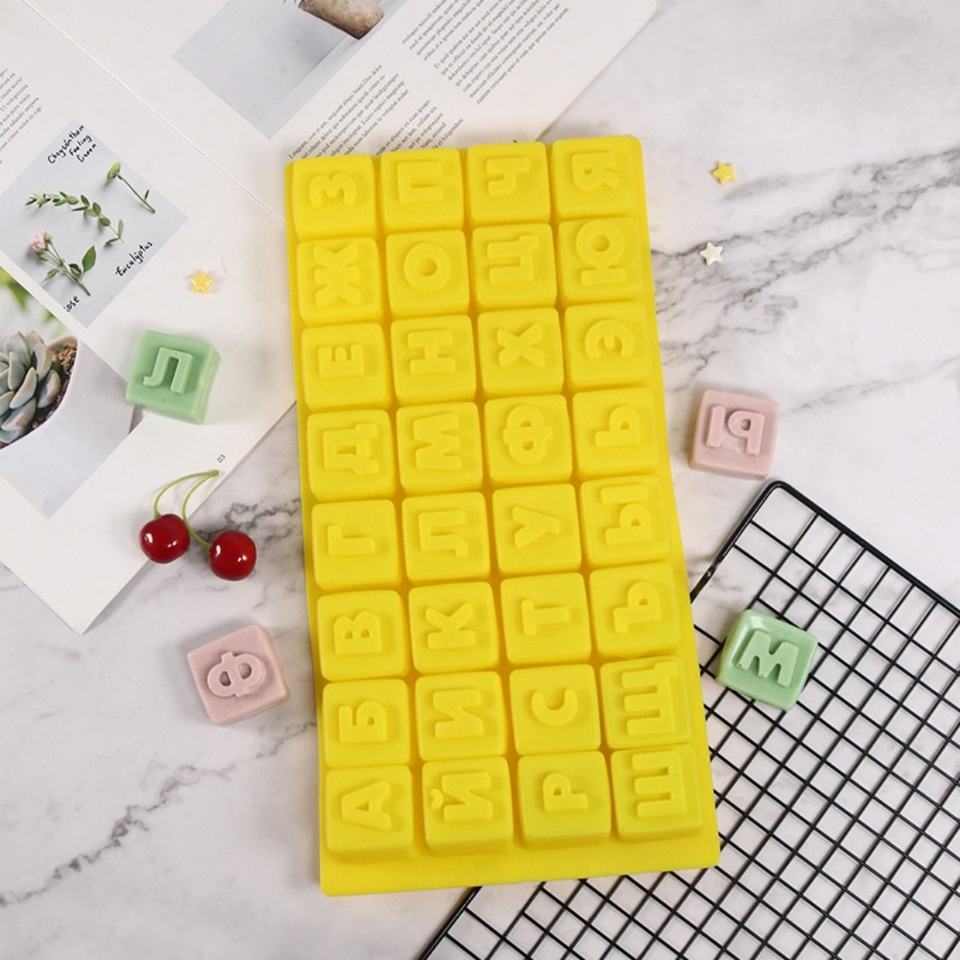 ตัวอักษรรัสเซียฟองดองท์เครื่องมือแม่พิมพ์เค้กช็อกโกแลตซิลิโคน DIY สบู่ทำมืออีพ็อกซี่เรซิ่นแม่พิมพ์อุปกรณ์รุ่น 3366