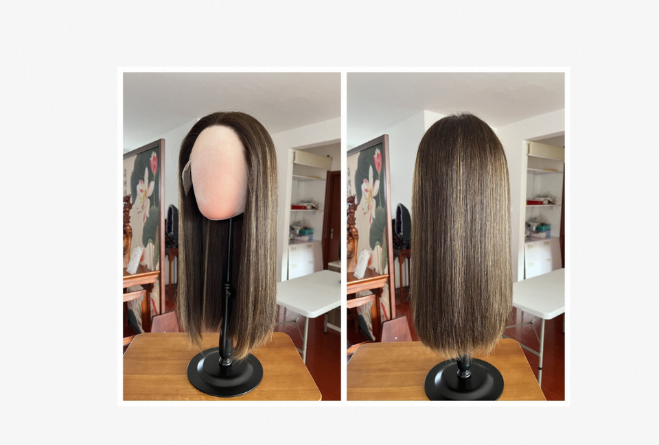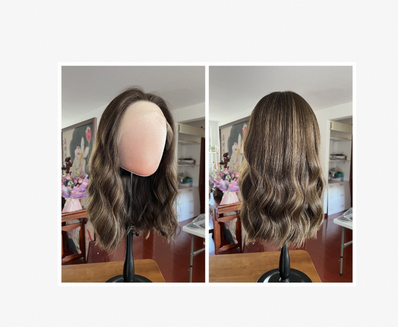 ผมธรรมชาติสไตล์ยุโรปเรียงตามแนวเส้นผมสีน้ำตาลอ่อนแบบหนา