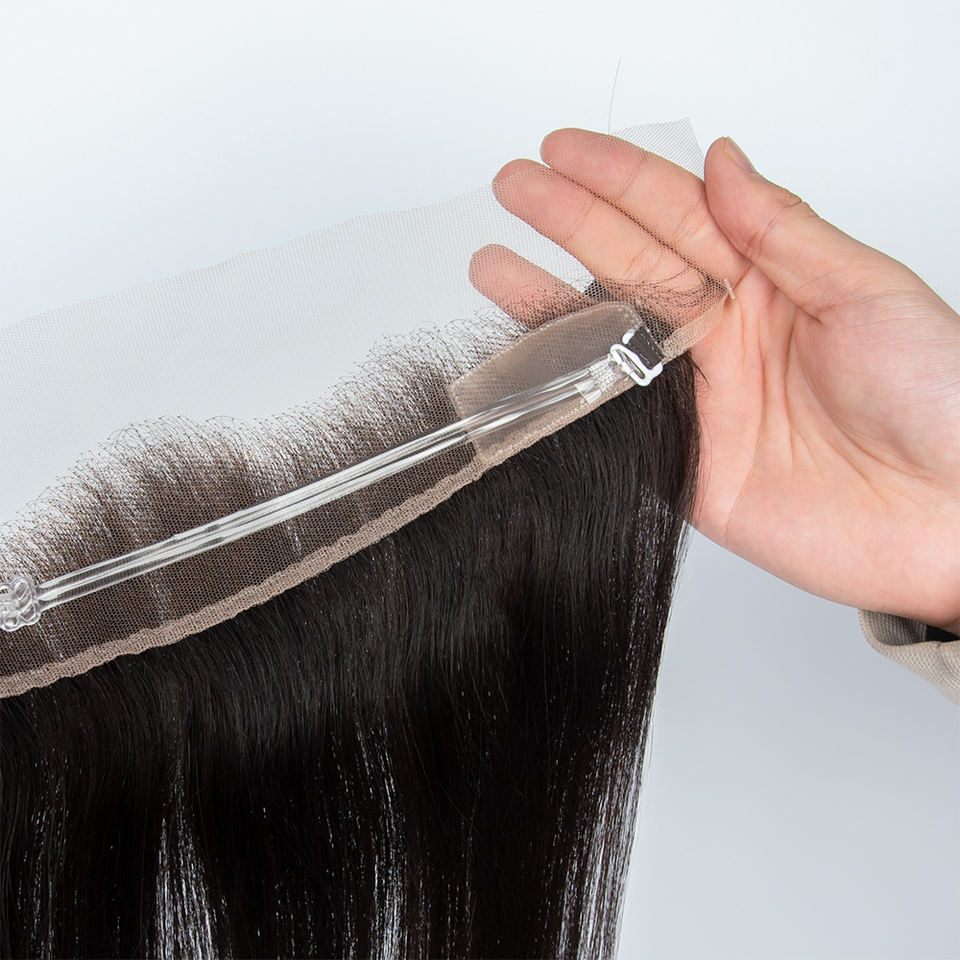 ท็อปเปอร์ผมแท้จากรัสเซีย 13x2 แบบลูกไม้สำหรับผู้หญิง พร้อมเชือกผูก