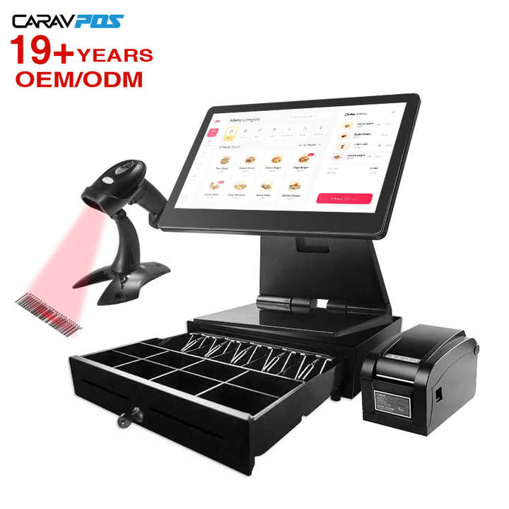 เครื่อง POS 15.6 นิ้วยอดนิยมของรัสเซียเครื่องบันทึกเงินสด WiFi หน้าต่างหน้าจอคู่ระบบ POS ทั้งหมดในที่เดียวสําหรับระบบขายปลีก