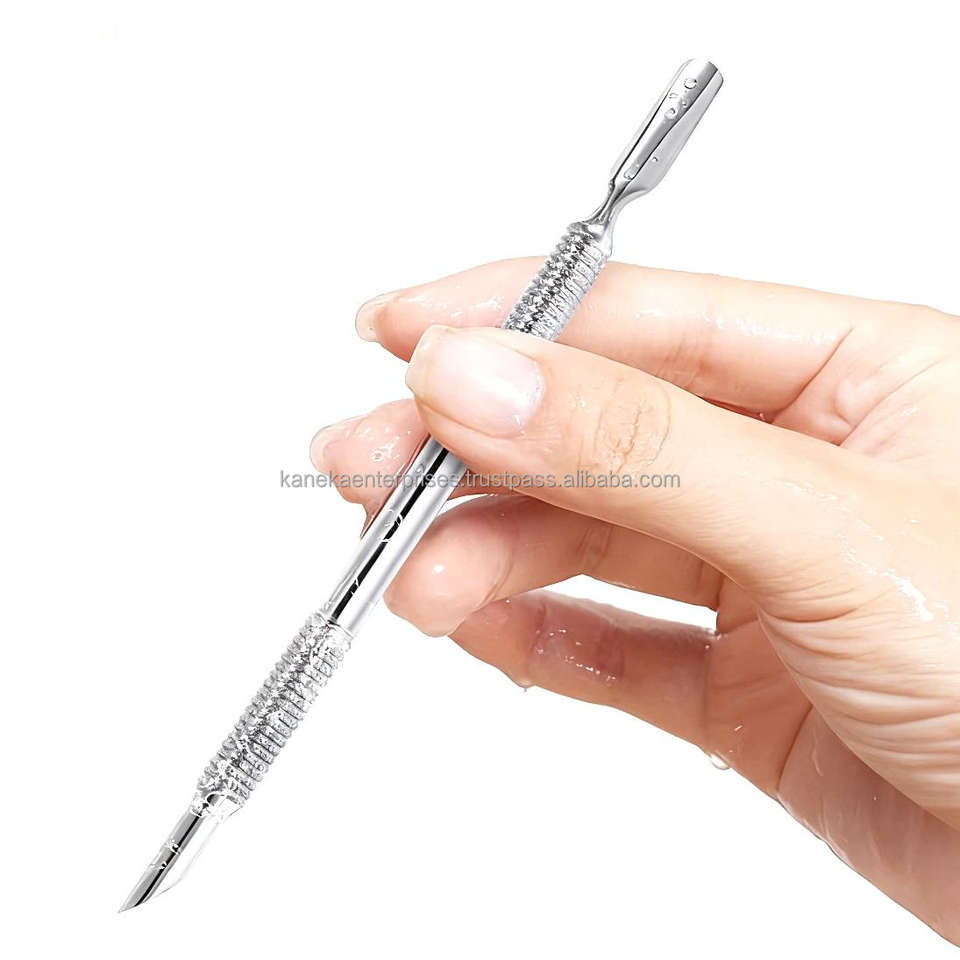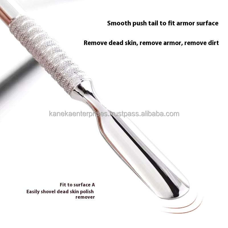 ที่ดันหนังกำพร้าแบบสองด้านสไตล์รัสเซีย หัวแบนแบบเฉียง ทำจากสแตนเลส ใช้ซ้ำได้ สำหรับกำจัดหนังกำพร้า เครื่องมือทำเล็บมือและเล็บเท้า