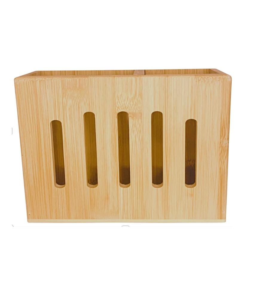 กล่องใส่เครื่องครัวไม้ไผ่แบบเรียบง่ายถอดออกได้สำหรับวางบนเคาน์เตอร์2ช่อง