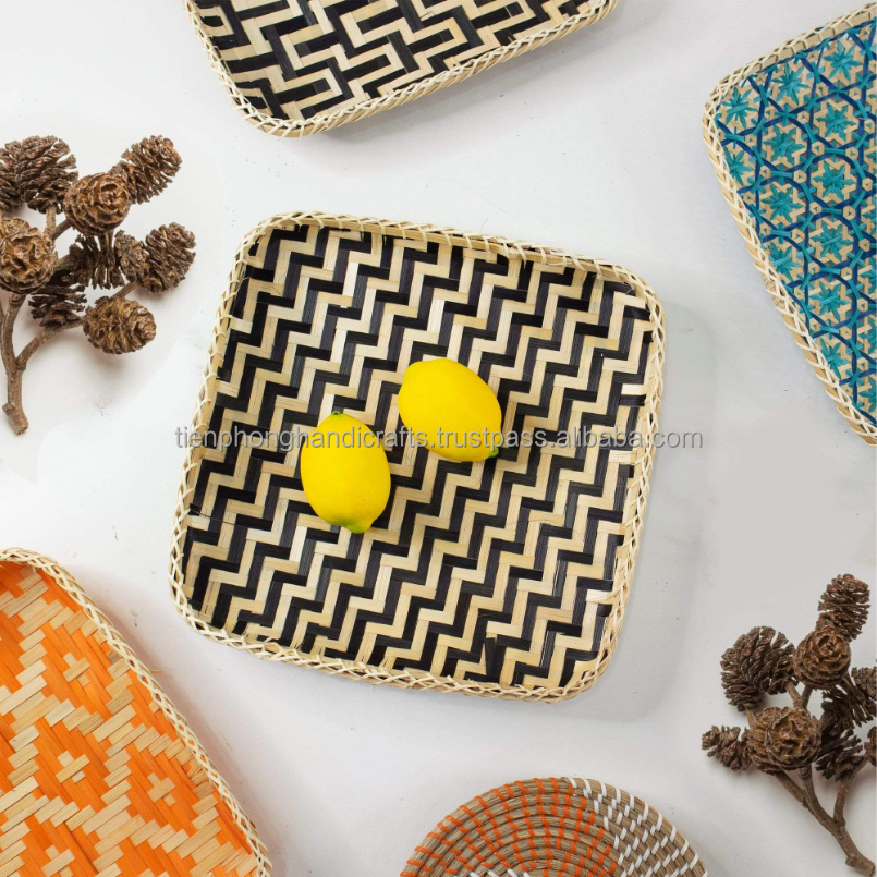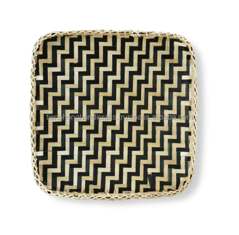 ถาดไม้ไผ่สี่เหลี่ยมสีดำและสีขาวชนบท | ถาดเสิร์ฟไม้ตกแต่งทำในเวียดนาม
