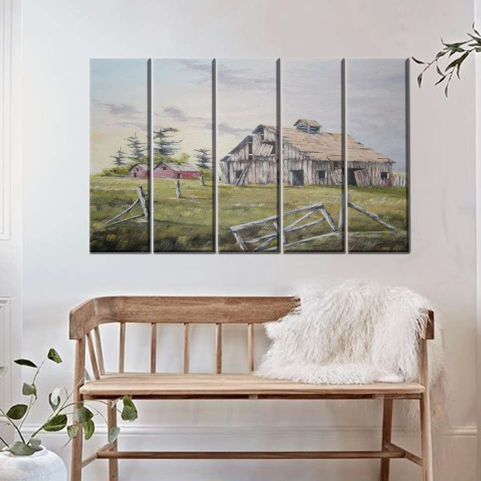 ภาพพิมพ์บนผ้าใบศิลปะสไตล์ชนบทโบโฮฟาร์ม - ของตกแต่งโรงนาเก่า,5P:Gallery Wrapped