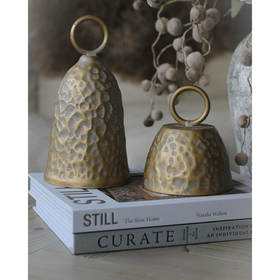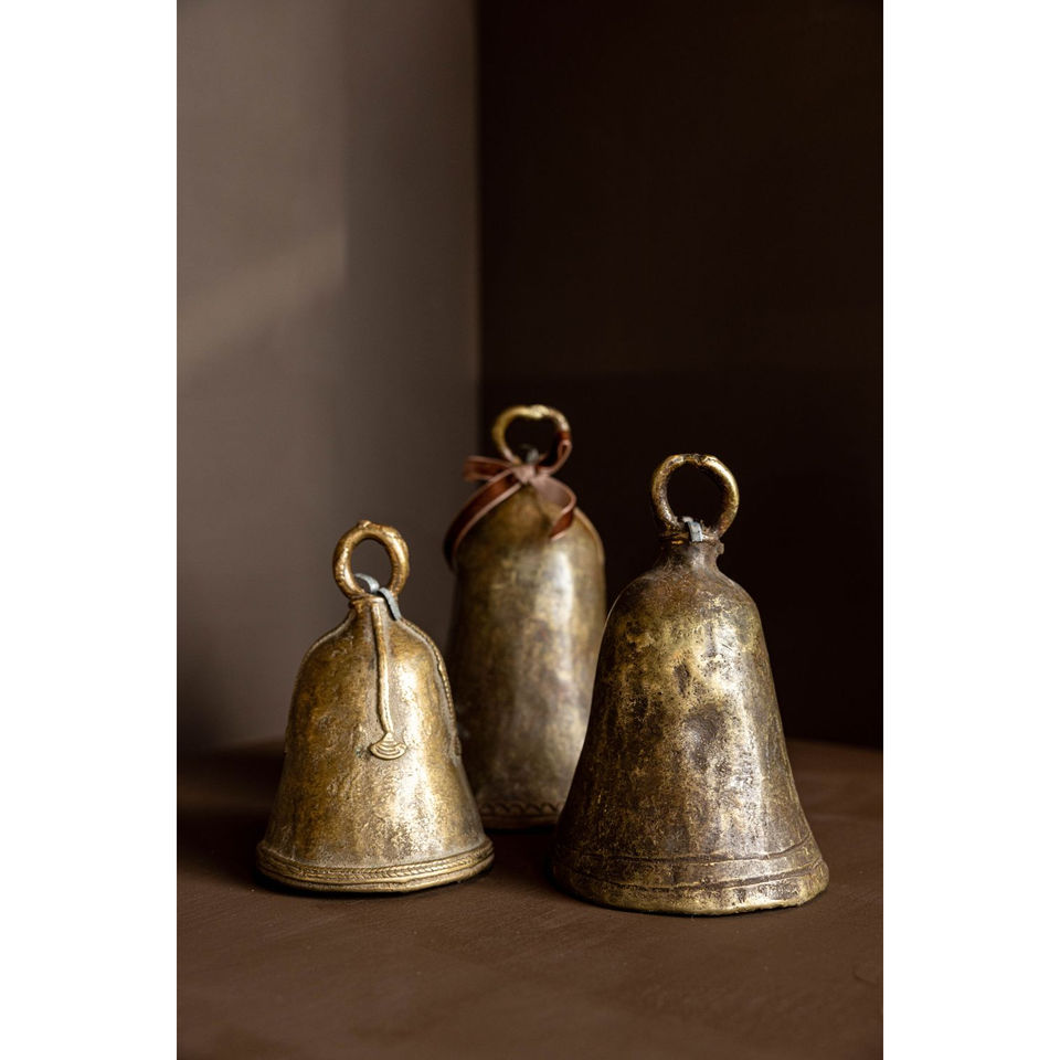 ระฆังแขวนทองเหลืองแบบเรียบง่ายพร้อมริบบิ้นสีแดงกระดิ่งวินเทจสำหรับตกแต่งคริสต์มาสบ้านไร่งานแต่งงานของประดับในวันหยุด