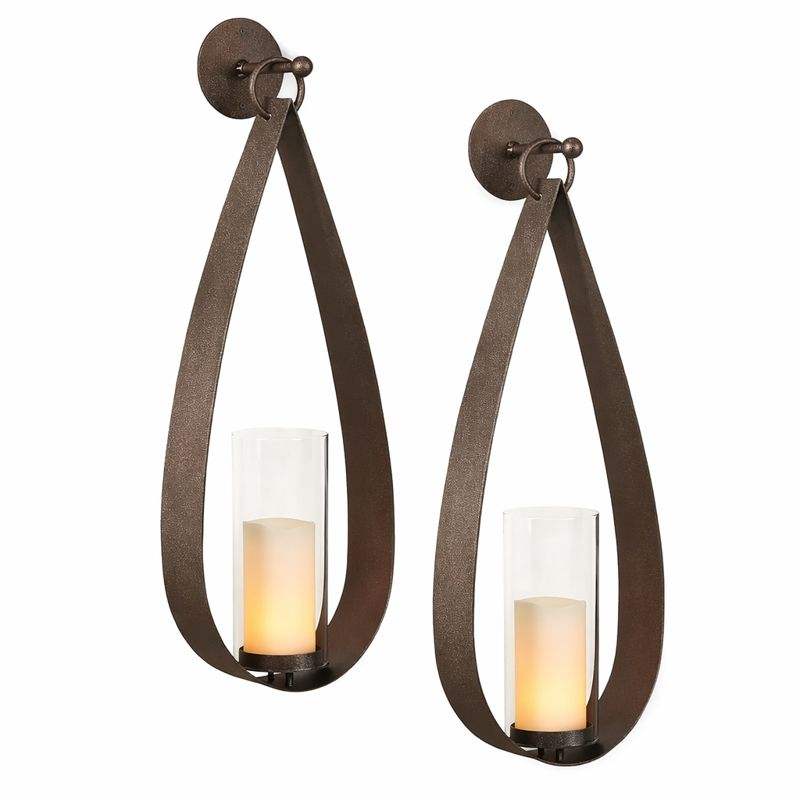 ชุดเชิงเทียนติดผนังโลหะสีน้ำตาลสไตล์เรียบง่าย พร้อมกรอบรูปทรงหยดน้ำ ดีไซน์งานฝีมือ ให้แสงอบอุ่น ตกแต่งบ้านอย่างมีสไตล์เหนือกาลเวลา