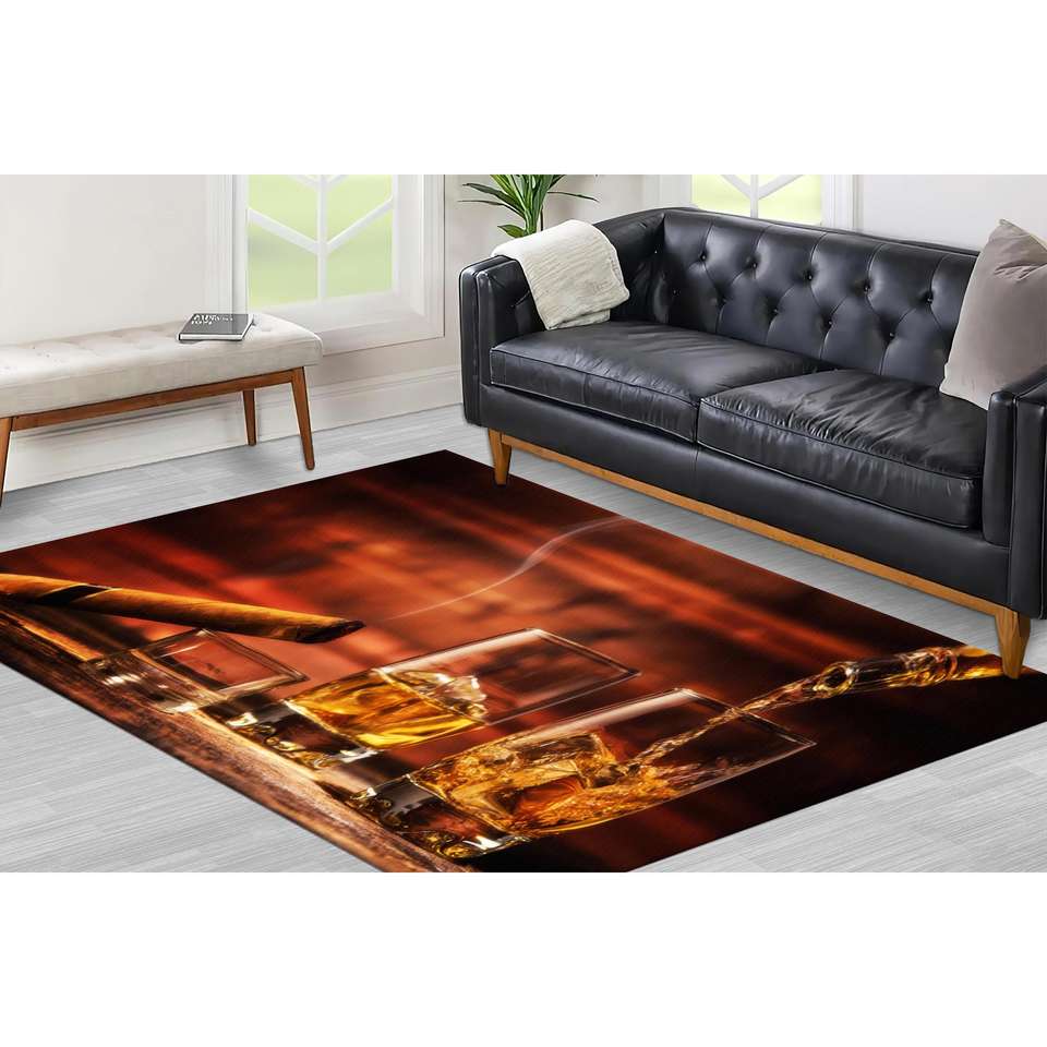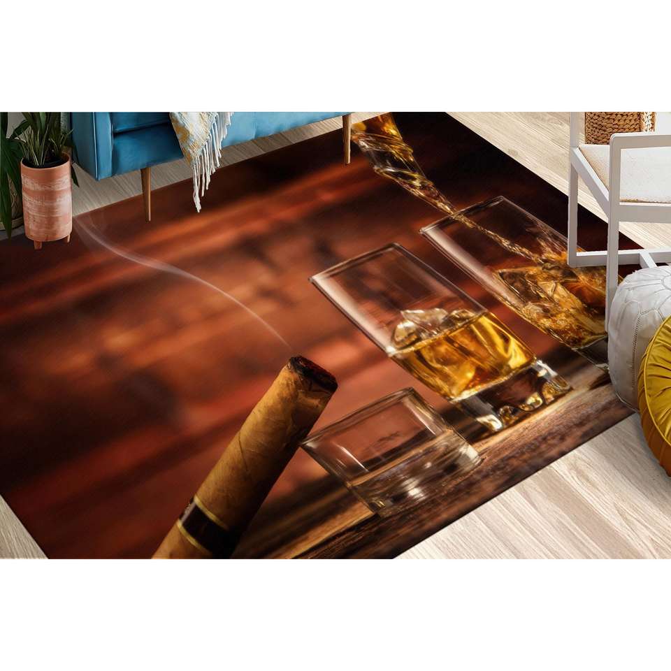 พรมพิมพ์ลายวิสกี้ซิการ์สีน้ำตาลแบบชนบท - พรมปูพื้นบาร์สไตล์แมนๆ ทำจากวัสดุไม่ถักทอ เนื้อนุ่ม