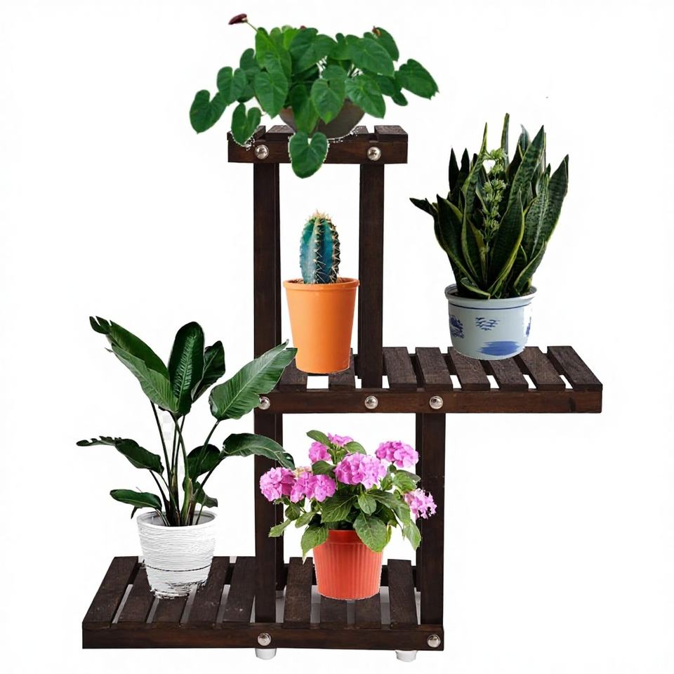 การแสดงต้นไม้เป็นชั้นเสน่ห์แบบชนบทแสดงให้เห็นถึงความเขียวขจีของคุณในสไตล์ด้วยขาตั้งเคลือบด้วยผงดอกไม้ในสวน
