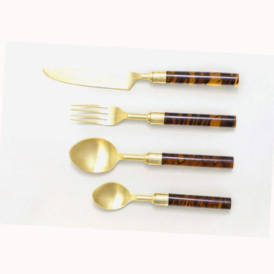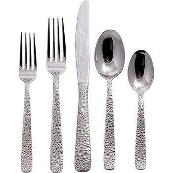 ชุดช้อนส้อมสไตล์อเมริกัน 5 ชิ้น ชุบเงิน ดีไซน์ลายค้อน ด้ามจับสแตนเลส
