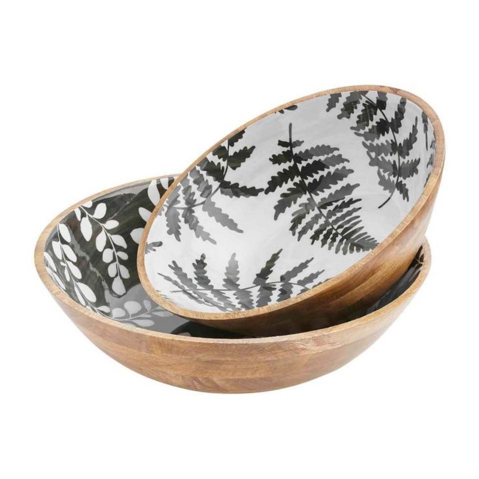 ชามไม้เคลือบสีสไตล์ชนบทริมชายฝั่ง | ชามเสิร์ฟตกแต่งลายปลาสไตล์เมดิเตอร์เรเนียน ทำจากไม้มะม่วง | ชุดชามครัว