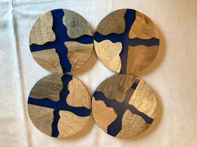 ที่รองแก้วไม้แกะสลักลายไม้แบบชนบทสำหรับตกแต่งงานแต่งงานแบบเรียบง่ายโดยถาดรองแก้วไม้ซานิยะที่แกะสลักโดย ksn