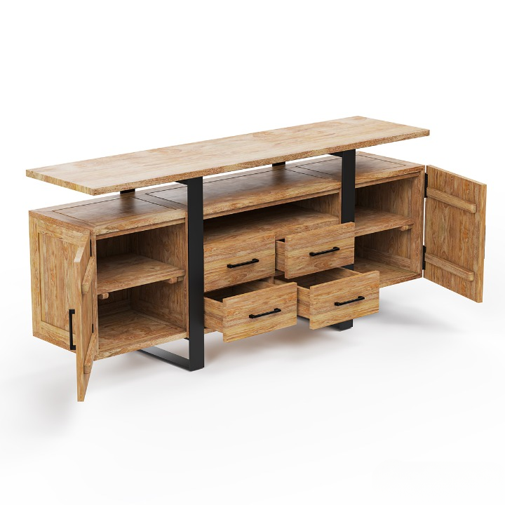 Rustic-Contemporary Teak Wood Eco-Friendly Durable Living Room Apartment Furniture Set Includes Coffee Table Media Console End