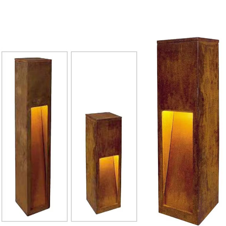 โคมไฟสนามกลางแจ้งเหล็กคอร์เทนแบบเรียบง่าย
