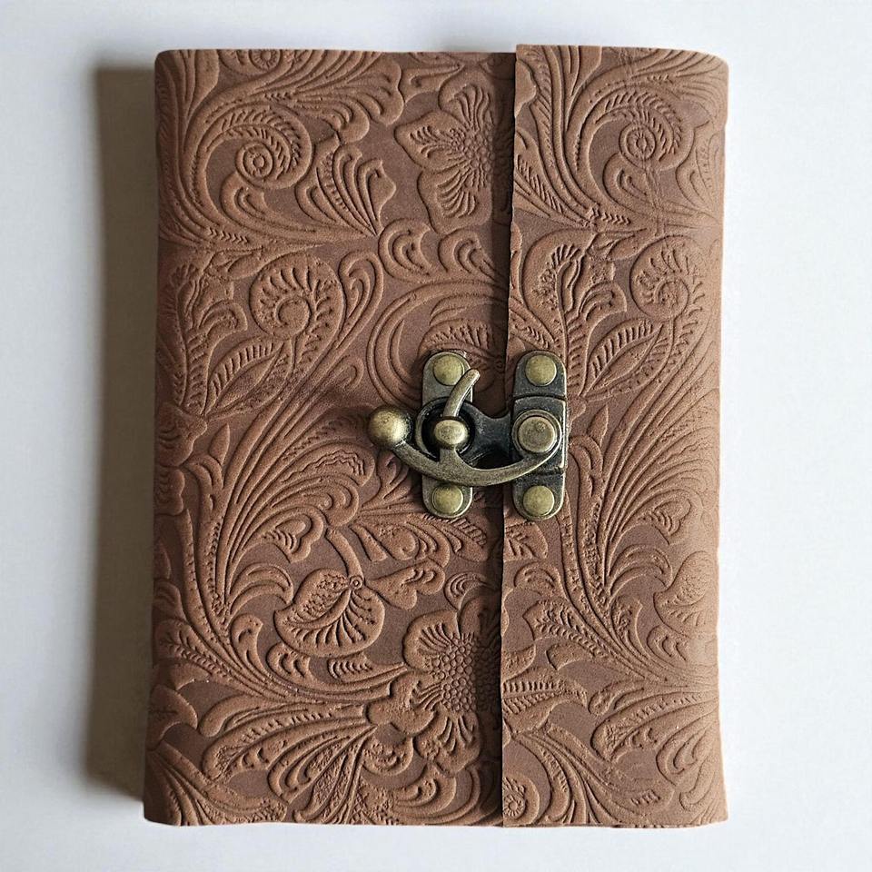 Rustic Embossed Leather Journal – Handmade Vintage Diary with Wrap Around Closure