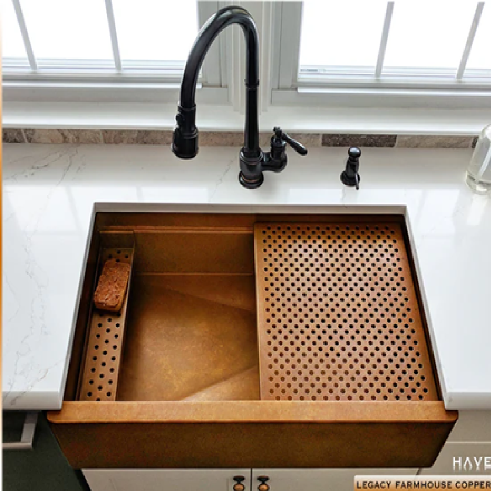 อ่างล้างจานทองแดงสำหรับห้องครัวบ้านไร่ชามคู่