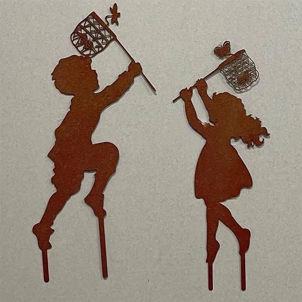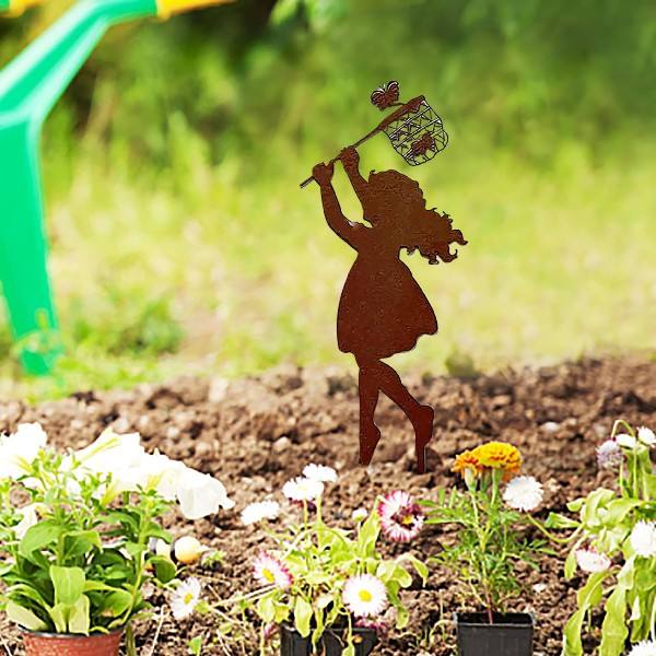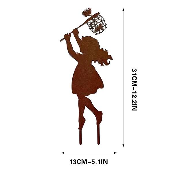 แผ่นเหล็กรูปหญิงสาวแบบยืนทำด้วยมือเสาโลหะสำหรับตกแต่งสวนในฟาร์มแบบเรียบง่ายเสาโลหะประดับสวน