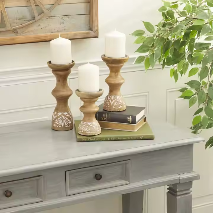 ชุดเชิงเทียนไม้เนื้อแข็งสไตล์บ้านไร่แบบเรียบง่าย เป็นมิตรกับสิ่งแวดล้อม ปรับแต่งได้ จำนวน 3 ชิ้น ขัดเงา ดีไซน์วินเทจคลาสสิก สำหรับเทียนทรงกรวยและทรงเสา
