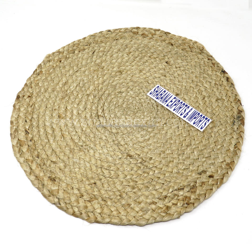 เสื่อปอกระเจาทรงกลมสไตล์บ้านไร่แบบเรียบง่ายงานทอมือสำหรับห้องรับประทานอาหารการตกแต่งห้องครัวและคาเฟ่
