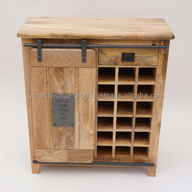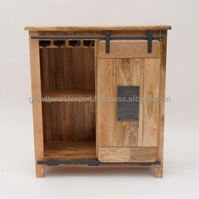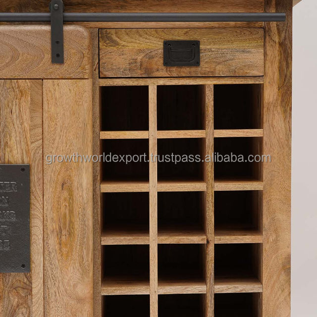 ตู้เก็บไวน์สไตล์บ้านไร่แบบเรียบง่าย ประตูบานเลื่อนแบบประตูโรงนา ประตูแบบเชคเกอร์ ชั้นวางไวน์ไม้สไตล์อินดัสเทรียล ตู้คอนโซลเก็บเครื่องดื่มแอลกอฮอล์ 3 ชั้น 2026