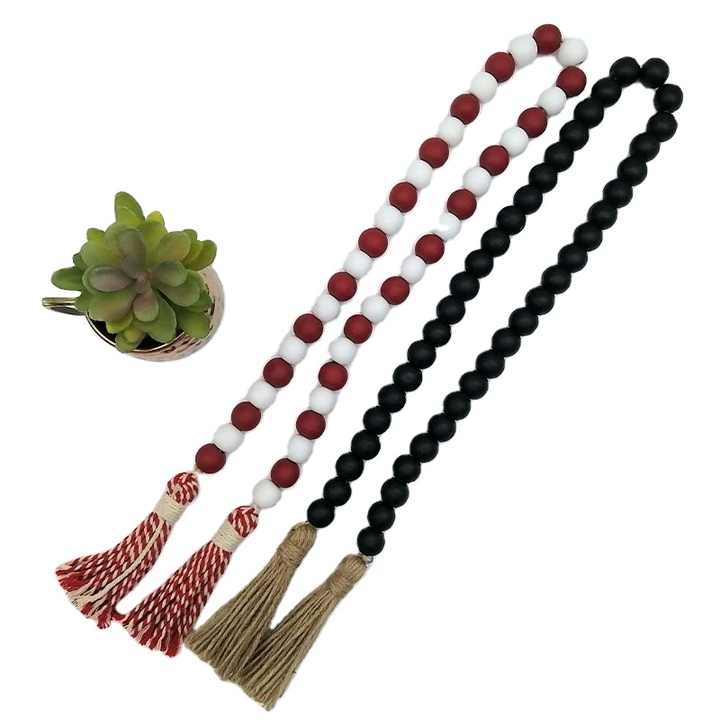 ชื่อผลิตภัณฑ์:พวงมาลัยลูกปัดไม้สำหรับบ้านไร่แบบชนบทพร้อมพู่