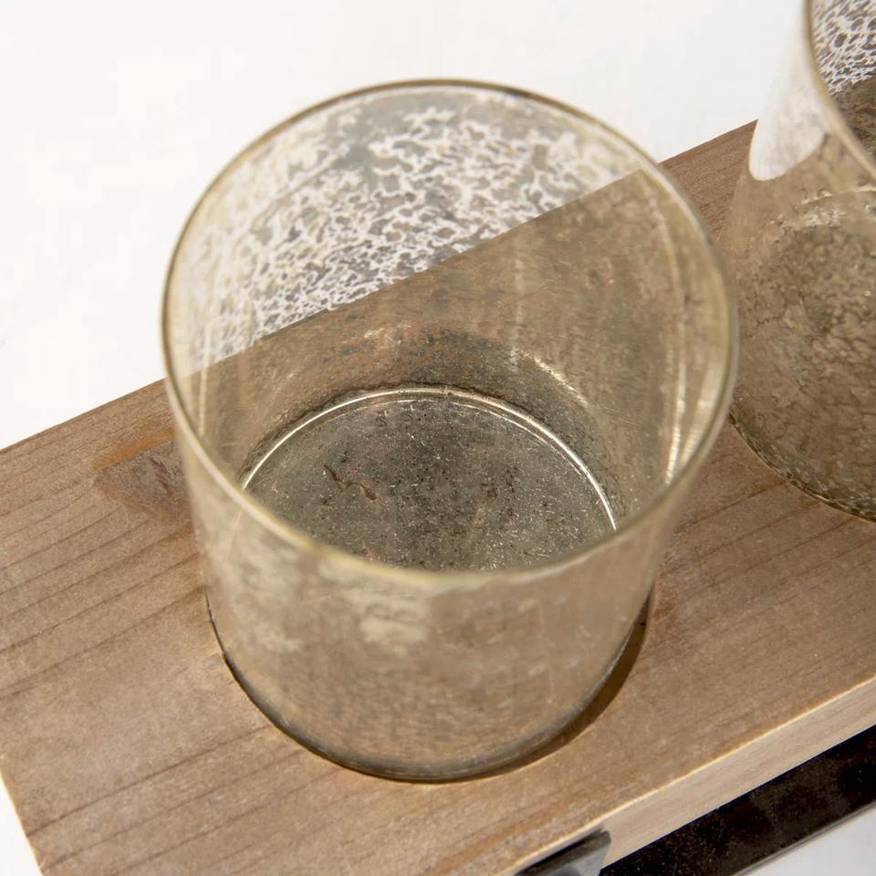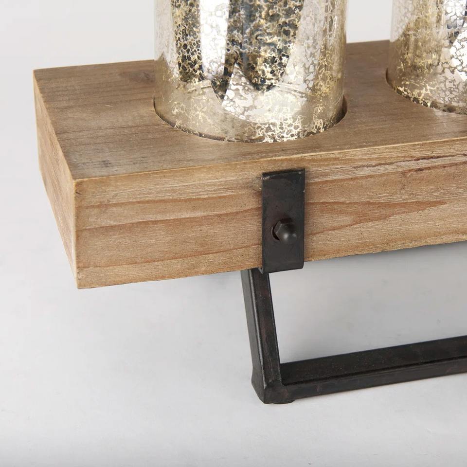 เชิงเทียนโลหะและไม้ในบ้านไร่แบบเรียบง่ายพร้อมที่วางแก้วปรอท5ชิ้นกลางโต๊ะอาหาร5-อ่อน