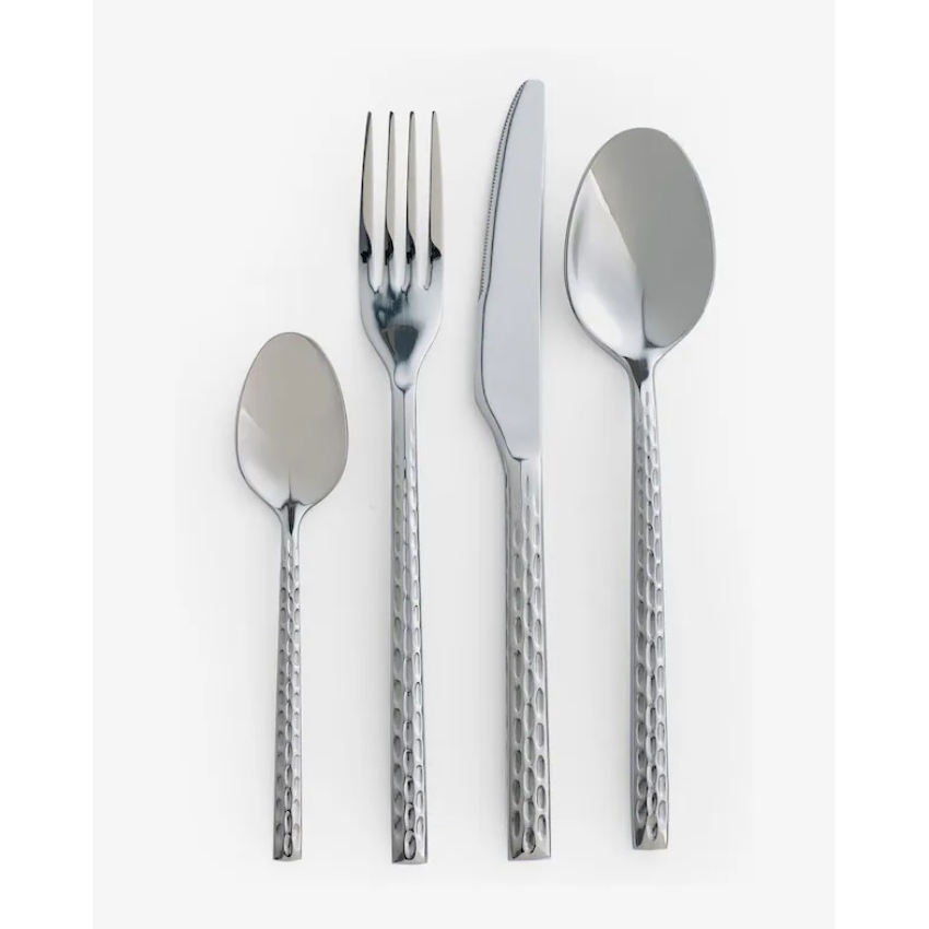 เครื่องใช้บนโต๊ะอาหารแบบมีฟอร์จแนวชนบทชุดมีดส้อมช้อนสแตนเลสชุดเครื่องเงินด้ามจับไม่เหมือนใครชุดเครื่องเงินมิเรอร์เหล็ก