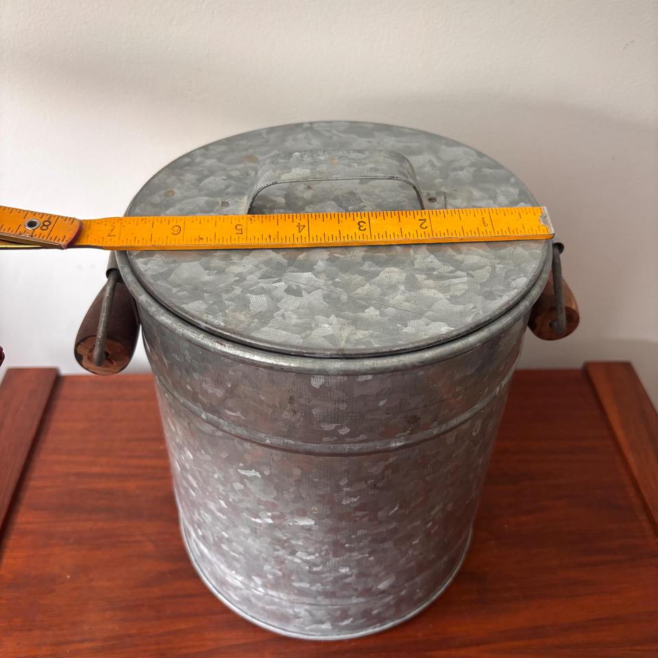 ถังน้ำแข็งชุบสังกะสีแบบเรียบง่ายพร้อมหูจับไม้ เหมาะสำหรับงานอีเว้นท์ งานแต่งงาน บาร์ที่บ้าน แช่เครื่องดื่ม และเสิร์ฟในงานปาร์ตี้