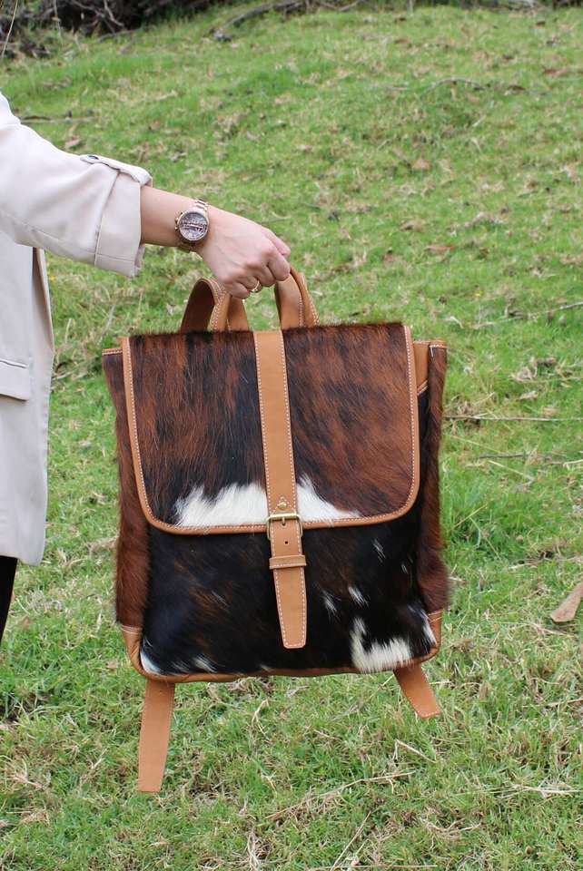 Rustic Genuine Leather Hair Backpack Zipper Closure Letter Customizable Design-Vintage Travel Laptop School Bag HNBP-0088