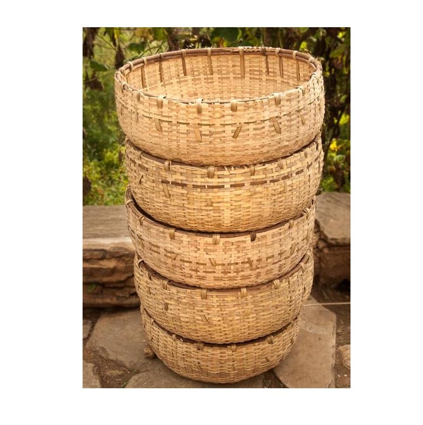 ตะกร้าไม้ไผ่ทำด้วยมือแบบเรียบง่ายพร้อมเส้นใยธรรมชาติเป็นมิตรต่อสิ่งแวดล้อมสำหรับผักผลไม้ขนมขบเคี้ยวจัดเก็บและเสิร์ฟ