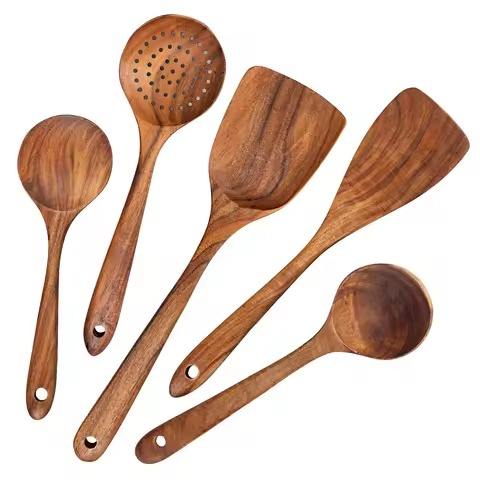 ช้อนไม้ทำมือสไตล์เรียบง่าย อุปกรณ์ครัวธรรมชาติสำหรับคน ตัก ข้าว แกง ซุป ซอส ของใช้บนโต๊ะอาหาร