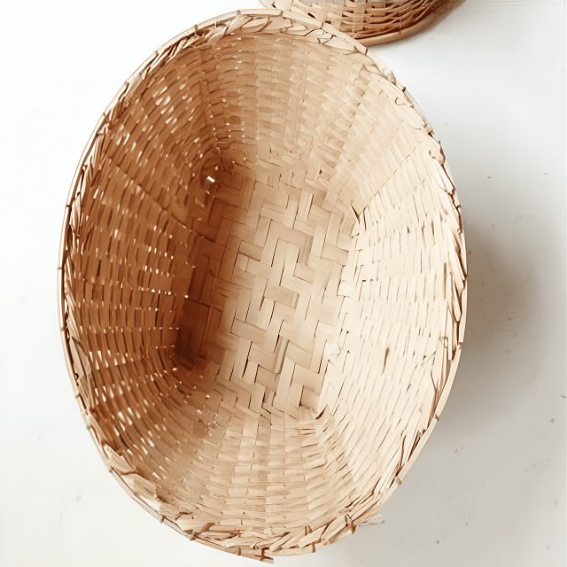 ตะกร้าไม้ไผ่ทรงกลมสานด้วยมือแบบเรียบง่ายพร้อมฐานสานที่ซับซ้อนเป็นมิตรต่อสิ่งแวดล้อมธรรมชาติ