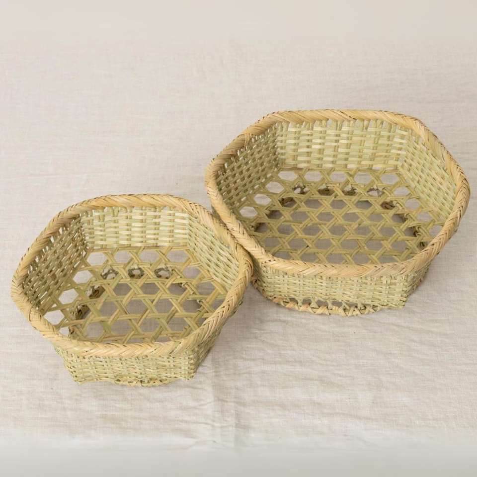 ตะกร้าไม้ไผ่ทรงหกเหลี่ยม100% งานสานด้วยมือสำหรับเก็บผักผลไม้วัสดุธรรมชาติของตกแต่งบ้านที่ทันสมัย