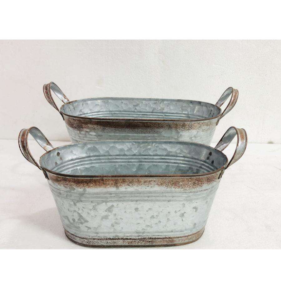 ชุดกระถางต้นไม้ชุบสังกะสี2ชิ้นสำหรับใช้ในร่มและกลางแจ้ง