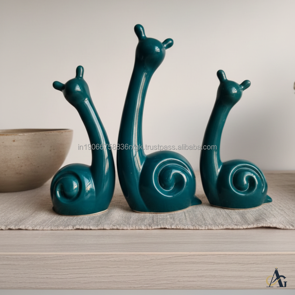 ชุดรูปปั้นหอยทากเซรามิกสไตล์เรียบง่ายทันสมัย 2 ชิ้น เคลือบเงา งานแฮนด์เมด สไตล์มินิมอล ของตกแต่งบ้านสไตล์อินเดีย สำหรับห้องนั่งเล่น