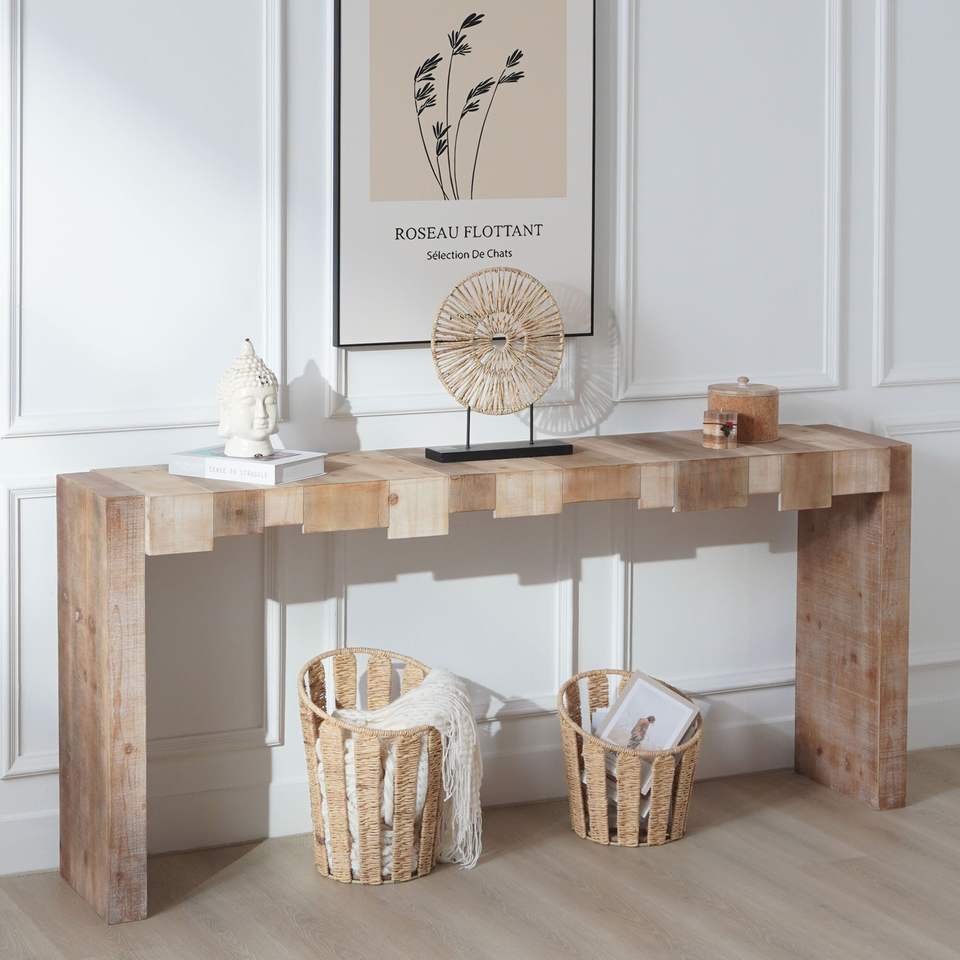 โต๊ะคอนโซลไม้สำเร็จรูปสไตล์รัสติกโมเดิร์นพร้อมดีไซน์ทรงบล็อกทันสมัย