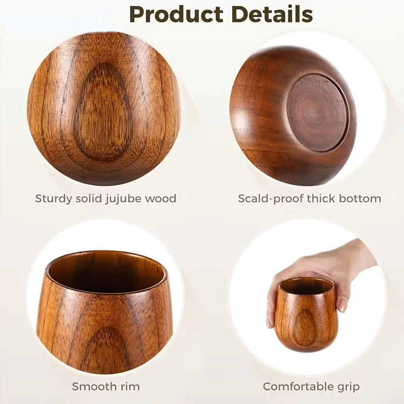 แก้วไม้พุทราธรรมชาติสไตล์เรียบง่าย - แก้วมินิเคลือบเงาแบบวินเทจ เป็นมิตรกับสิ่งแวดล้อม เหมาะสำหรับเป็นของขวัญส่งเสริมการขาย