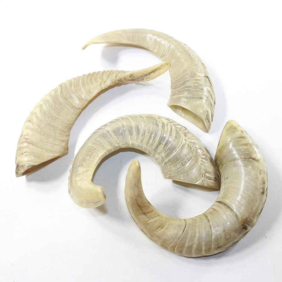 ฮอร์นแกะธรรมชาติแบบชนบทเก็บรวบรวมอย่างมีจริยธรรมทำความสะอาดและทำด้วยมือสำหรับทำ shofar และตกแต่งผนัง