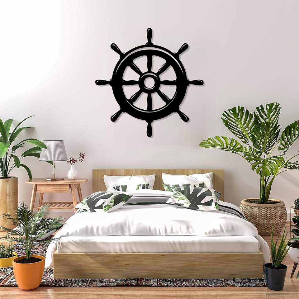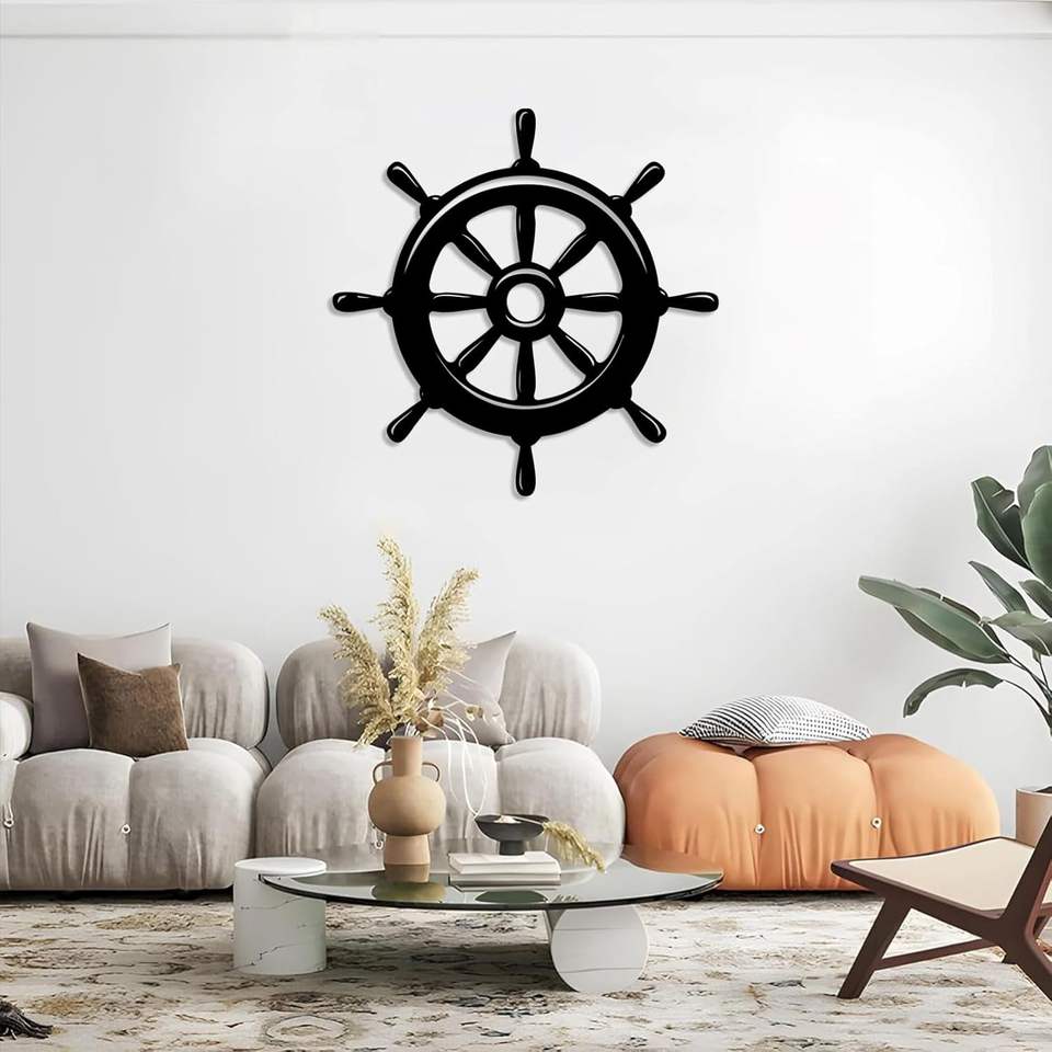 พวงมาลัยเรือทะเลแบบเรียบง่ายหางเสือตกแต่งผนังสไตล์เมดิเตอร์เรเนียนพร้อมอวนจับปลาสำหรับตกแต่งบ้านธีมชายหาด