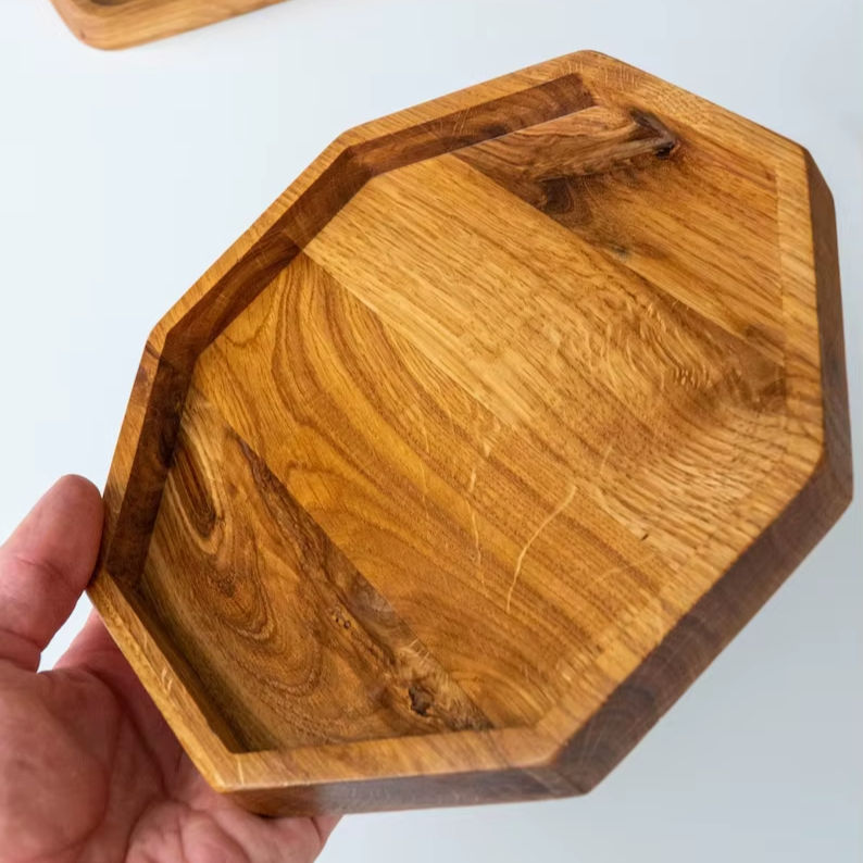 ถาดเสิร์ฟไม้โอ๊คทรงแปดเหลี่ยมแบบเรียบง่าย จานไม้ แผ่นรองเสิร์ฟ ทำด้วยมือ อุปกรณ์ตกแต่งโต๊ะทำงาน ดีไซน์ประณีต