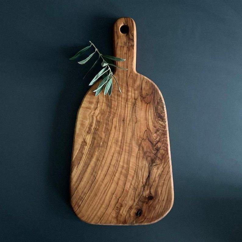 เขียงไม้มะกอกทรงสี่เหลี่ยมผืนผ้าแบบเรียบง่ายจาก MT Exports พร้อมด้ามจับมีดไม้ หนา 1.3 ซม. ใช้กับเครื่องล้างจานได้ ปลอดสารพิษ